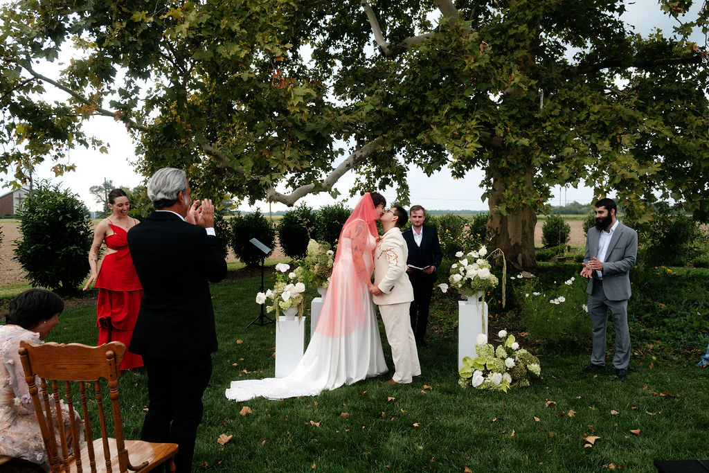 Phia and Alex were married in South Jersey on a property that featured a beautifully reconstructed barn. The setting carried a rustic charm that perfectly reflected who they are, warm, down-to-earth, and rooted in simplicity. From the moment guests arrived, it was clear this was not about spectacle or tradition for tradition’s sake, but about creating a day that felt intentional and easy, a celebration that truly embodied them.
